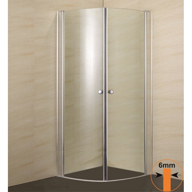 Тази душ кабина е овален модел за ъглов монтаж с две прозрачни, пантиращи врати. Изработена е от 6 мм прозрачно закалено стъкло и хромиран алуминиев профил. Отварянето става чрез обикновени панти, без плъзгаща система, което придава елегантна и минималистична визия. За плавно затваряне и защита от изтичане е осигурена герметизация чрез силиконови уплътнения и магнитни лайстни. Монтажът е лек и гъвкав – директно върху плочки, без нужда от поддушово корито. В комплекта е включен и компенсаторен профил, който коригира неравности по стените.