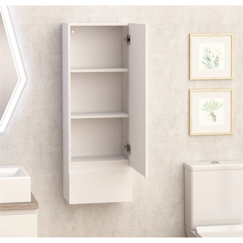 Колона за баня, материал: PVC, заден панел 5 мм, вратичка 18 мм, останалите панели с дебелина 15 мм. DTC панти и ADAMS плъзгач с плавно затваряне. Бял гланц. Реверсивна вратичка.