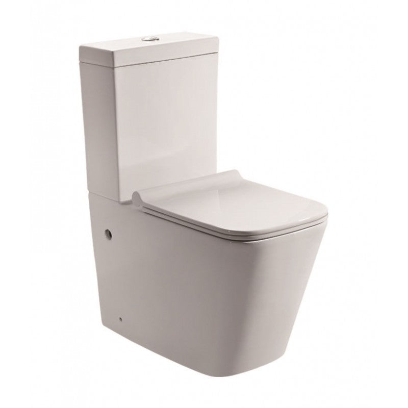 Двукомпонентен моноблок с долно оттичане и долно водоподаване. Безръбов (Rimless) дизайн за лесно почистване. Казанче с двойно механично изпускане 3 и 4,5 литра. Включен капак от дуропласт със Soft Close и бързо освобождаване. Материал - порцелан. Цвят - бял гланц. Включени крепежи за монтаж.