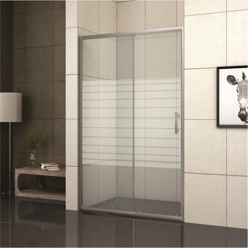 Този елегантен параван предлага отлично съчетание между съвременен дизайн и практичност. Изработен от 5 мм закалено стъкло с нежни матови декоративни линии, той придава усещане за стил и уединение, без да затваря пространството. Конструкцията включва фиксирана част и плъзгаща врата, която се движи леко и безшумно благодарение на двойни ролки и стабилна релсова система. Хромираният алуминиев профил осигурява здравина и устойчивост, като позволява и прецизен монтаж дори при леки неравности по стените чрез вграден компенсатор. Параванът е реверсивен и се адаптира както за лява, така и за дясна инсталация.