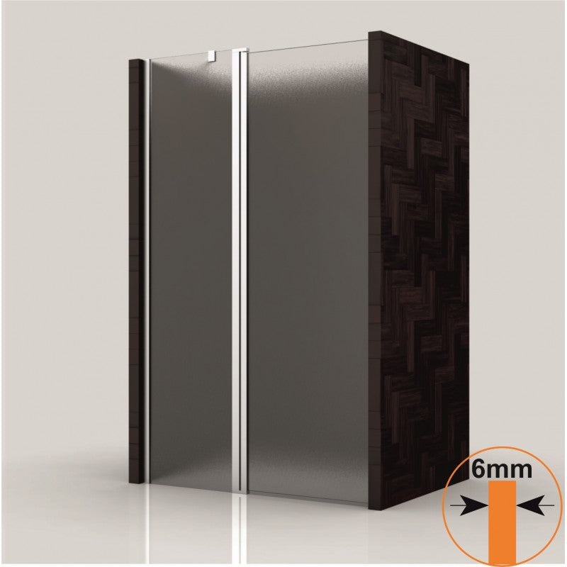 Този стилен параван съчетава елегантна и семпла визия с практична функционалност. Изработен от 6 мм закалено FABRIC матирано стъкло, той предлага приятна визуална дискретност, без да прави пространството тясно. Конструкцията включва неподвижен панел и подвижна врата, изпълнени с плавен ход, благодарение на тик-так панти и здрава релса — идеално решение за душ зони без излишни украси. Хромираният алуминиев профил придава деликатен блясък и осигурява стабилност, а интегрираният компенсатор позволява лесен монтаж дори при стени с леки неравности. Подсилена с опорна лента под 45°, конструкцията предлага сигурност и минимизира риска от влага извън душа. Алуминиевите дръжки са дискретни и стилни, допълвайки цялостната естетика. Идеален е за модерни и минималистични пространства, които ценят чистите линии и функционалността без компромис.