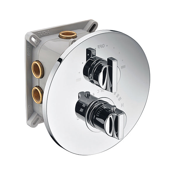3-пътен термостатен смесител за душ с кутия за вграждане.