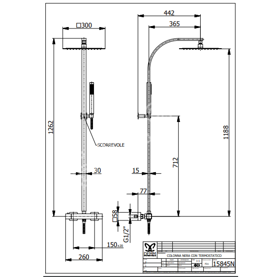 Душ колона в комплект с термостатен смесител с превключвател, с душ слушалка 30x30 и ръчен душ против варовик