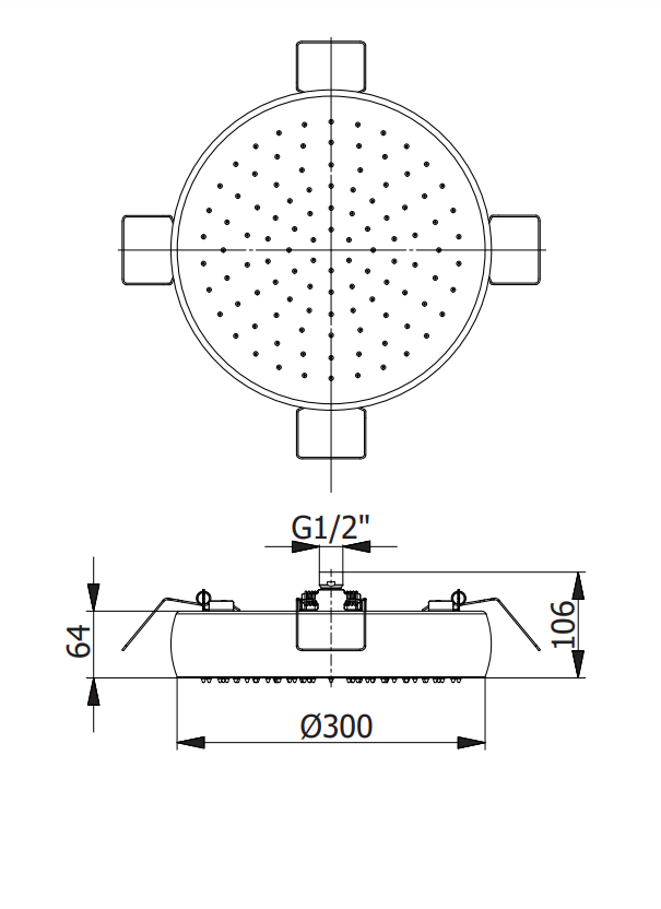 Ø300 mm монтирана на таван душ слушалка с пружинна фиксираща система