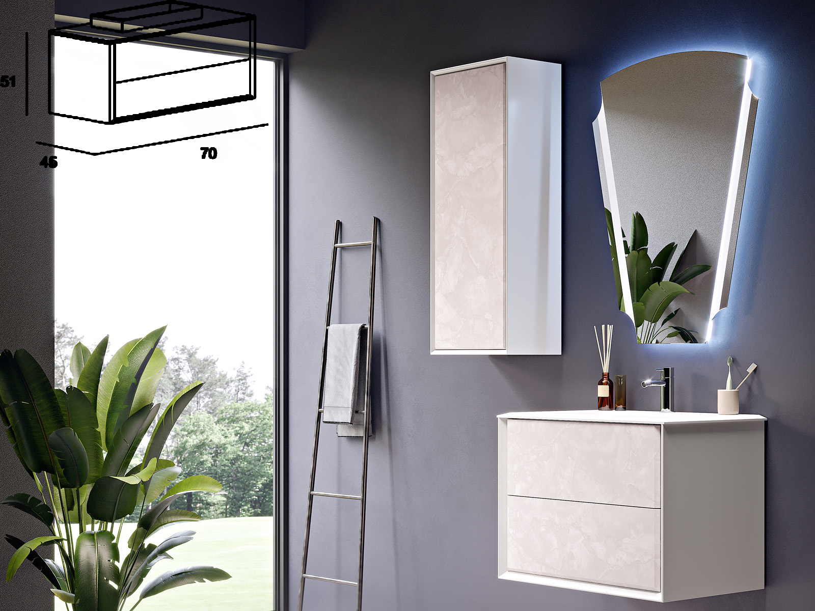 Есенциалността на формите и практичността на използването дават на колекцията Bellagio винаги актуален вкус и естетика. Линията включва не само умивалници за поставяне на басейн, но и вградени умивалници от матова бяла смола. Практичните чекмеджета с 45 градусови ръбове, оборудвани със страни от стъкло и мека движеща се система за отваряне и затваряне, могат да бъдат предлагани в различни изпълнения, включително дървесни есенции и мраморни стъкла.