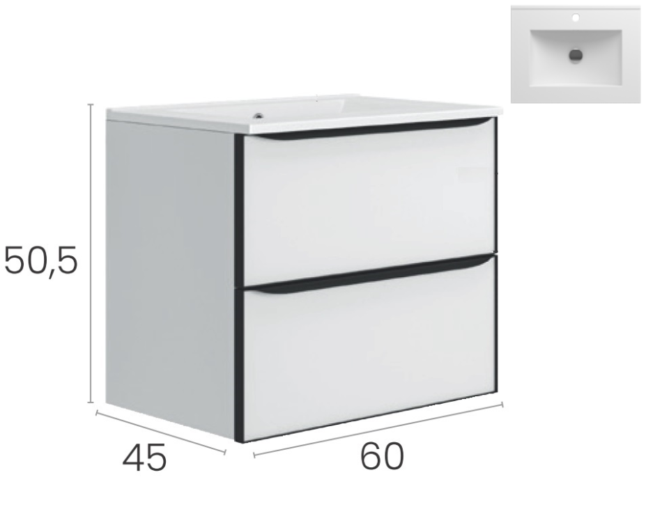 Серията Glass съчетава нови комбинирани материали като челата на чекмеджетата от алуминий и стъкло. Алуминиевите рамки се предлагат в две матови черни или матови бели покрития и оптично стъкло за предаване на цялата естественост на цвета. Мебели, проектирани с тънки чекмеджета, с безшумно самозатваряне и с изрез за запазване на сифона с отделения и страни от водоустойчив Mdf.