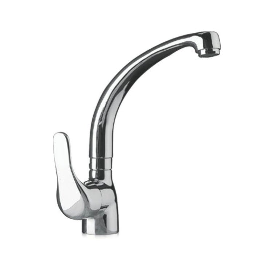 Едноръкохватков смесител за мивка със страничен лост и 20см въртящ се чучур за маркуч.