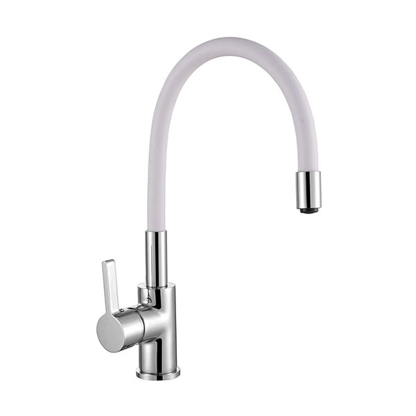 Едноръкохватков смесител за мивка със страничен лост и регулируем гъвкав чучур.