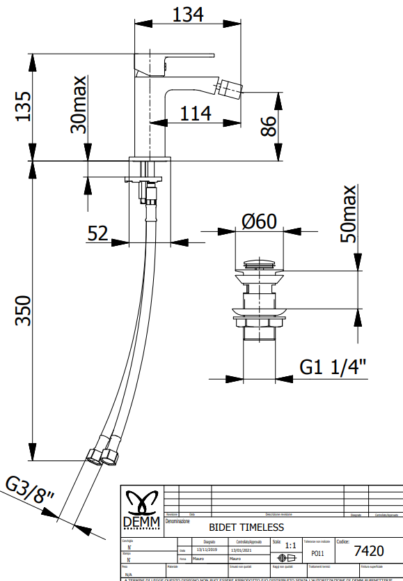 Едноръкохватков смесител за биде с отвор КЛИК-КЛАК