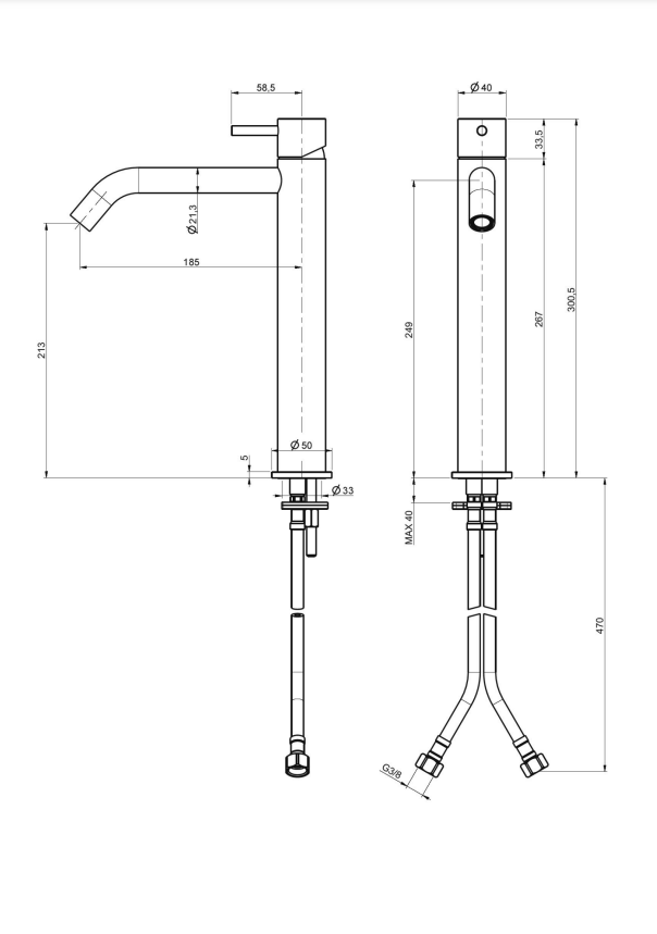 Висок едноръкохватков смесител за мивка без изпускателна тръба
