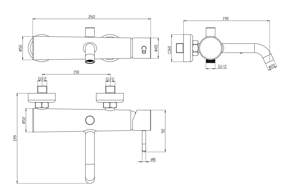 Едноръкохватков смесител за вана с автоматичен превключвател и душ комплект